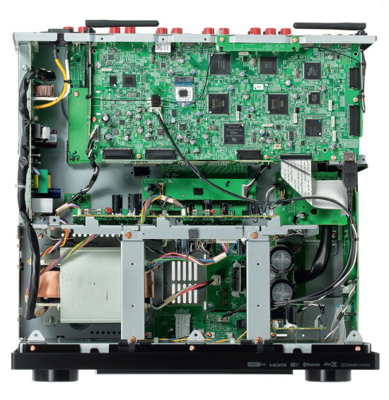 Obsługę sygnałów z wejść i wyjść HDMI powierzono tercetowi układów Panasonica oraz Silicon Image. Dobrym znajomym jest też DSP Analog Devices z rodziny Sharc; ciekawym dodatkiem jest jednak inny procesor, znany bardziej z urządzeń stereo, Texas Instruments D808K013.
