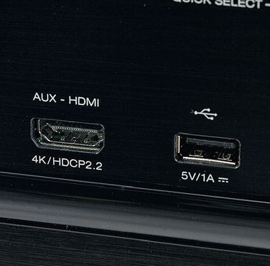 W panelu podręcznym znalazło się, tak jak u konkurentów, gniazdo USB służące do podłączenia nośników pamięci (i odtwarzania plików audio), jednak przewaga AVR-X1400H polega na obecności podręcznego wejścia HDMI (z 4K i HDPC 2.2), którego konkurenci nie mają. Denon nie ma natomiast analogowego wejścia mini-jack. Na froncie jest ponadto wyjście słuchawkowe i wejście na mikrofon kalibracyjny.