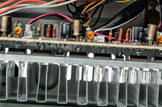 Radiator końcówek mocy jest skromny, nie ma też wentylatora, stąd ostrożność w kalibracji pracy układu na obciążeniu 4-omowym - aby nie przegrzać urządzenia.
