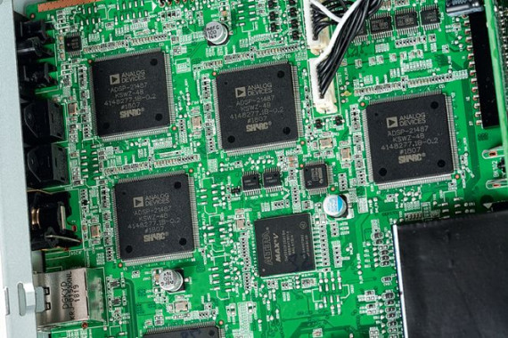 Płytka cyfrowa przypomina ogólnie tę z SR6013 Marantza. Denonie W AVR-X450H0 mamy jednak bardziej okazałą sekcję procesorów DSP, opartą na znakomitych układach Analog Devices SHARC.