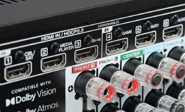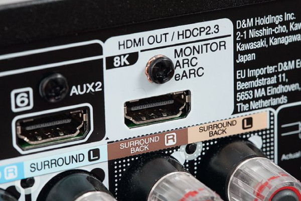 Zestaw gniazd na tylnej ściance Marantza Cinema 70S zupełnie wystarcza, tym bardziej że współczesne instalacje polegają głównie na HDMI. W tym zakresie 70S ma wyjście HDMI z nowoczesnym dodatkiem eARC i aż sześć wejść – trzy dla źródeł 4K i trzy w standardzie 8K (chociaż dostępność takich materiałów jest sprawą przyszłości).