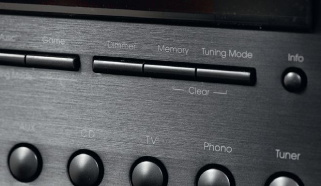 Z wielkiego frontu bije w oczy funkcjonalne zaawansowanie. Wyrażone bezpretensjonalnie, ale i bez oporów – naliczyłem aż 37 przycisków. To kwintesencja tradycyjnego japońskiego sprzętu. Dostęp do większości funkcji jest natychmiastowy i oczywisty, przyciski pogrupowano czytelnie (źródła, zdalne strefy, tryby surround, tuner FM i wiele innych.