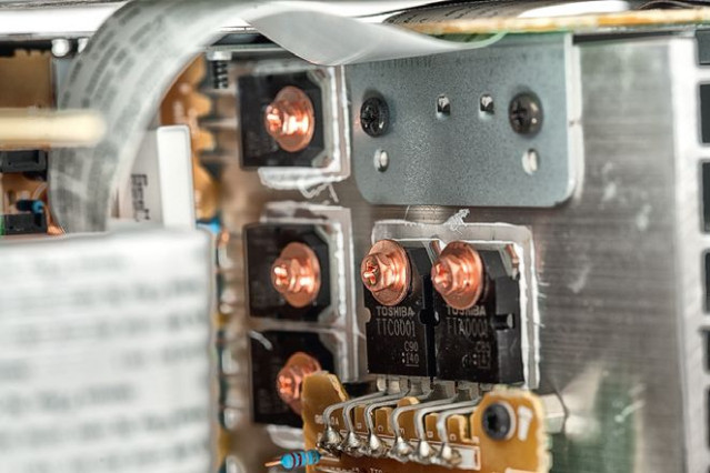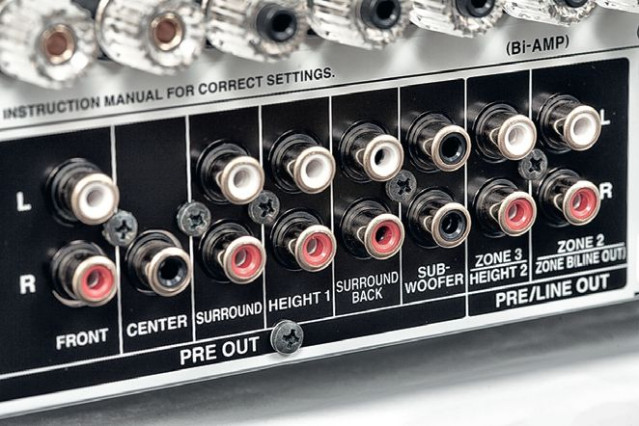 Analogowych wejść RCA jest aż siedem (w tym jedno dla gramofonu – z wkładką MM), dwa cyfrowe wejścia (S/PDIF i Toslink). W ich pobliżu zainstalowano zestaw wyzwalaczy i gniazd dla czujników podczerwieni (jeden jest nawet w komplecie).