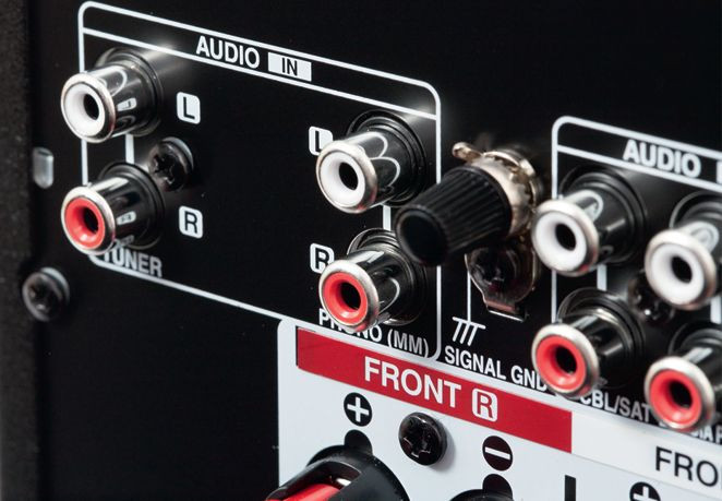 Panel analogowy obejmuje aż pięć wejść liniowych oraz wejście gramofonowe (MM). W sekcji cyfrowej zrezygnowano z wejść współosiowych, zostały tylko dwa wejścia optyczne (dla źródeł, które nie mają HDMI).
