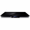 Przednią oraz boczne ścianki pochylono odtwarzacza Philips BDP7700 do tyłu, z delikatnymi przejściami między powierzchniami, które połyskują lśniącą czernią.