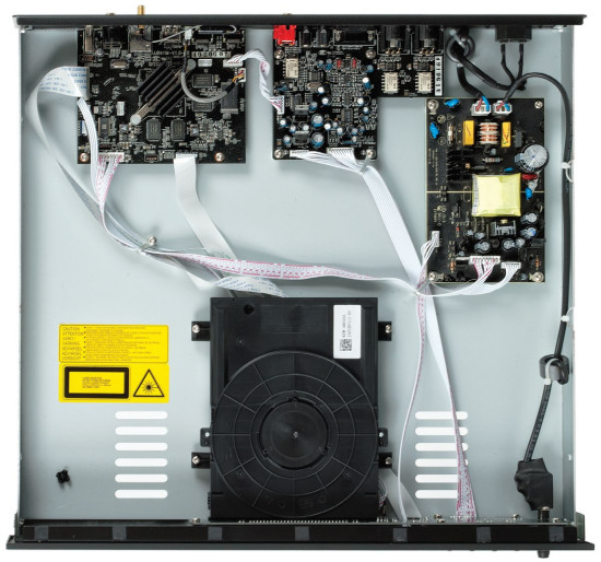 Po zdjęciu metalowej górnej płyty obudowy okazuje się, że full metal jacket mógłby być dwukrotnie mniejszy. W konstrukcji wydzielono cztery sekcje: napęd, układy wizyjne i sieciowe, płytkę audio oraz zasilacz.