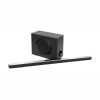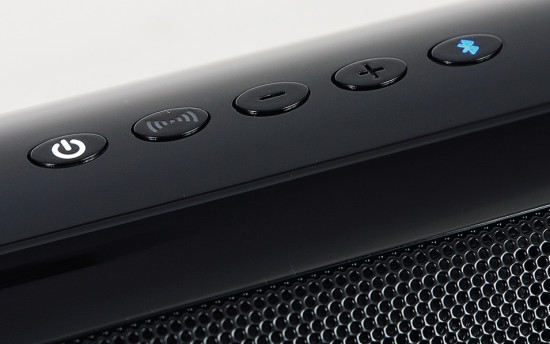 Właściwy soundbar ma 92 cm długości, 11 cm wysokości i 9 cm głębokości. Przekrój jest owalny, górę, dół i boki obudowy pokrywają plastikowe, błyszczące panele, a głośniki są ukryte pod metalową maskownicą. Urządzenie prezentuje się skromnie i ładnie.
