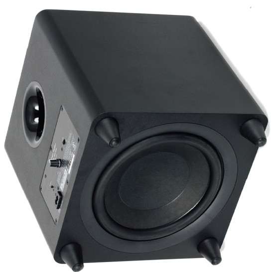 Subwoofery to duża (36,5 cm x 32 cm x 32 cm) i solidna konstrukcja (masa sięga prawie 10 kg). 25-cm głośnik z celulozową membraną zamontowano w dolnej ściance, czemu towarzyszą kilkucentymetrowe, gumowane nóżki.