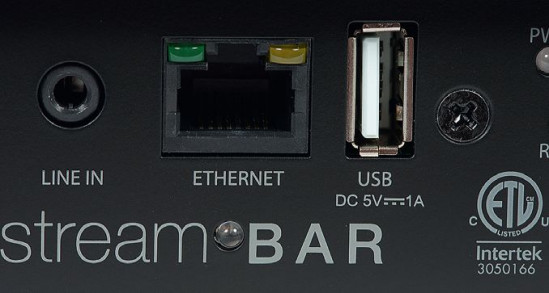 Dzięki sieci LAN (a także Wi-Fi) uruchomimy np. funkcje odtwarzacza strumieniowego, ale Stream Bar potrafi również odtwarzać pliki wprost z nośników pamięci, podłączonych do gniazda USB.