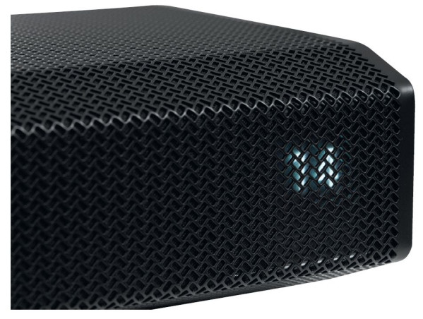 Listwa jest ciężka i wygląda solidnie, co jest też zasługą sztywnej, siateczkowej maskownicy, obejmującej przednią i górną ściankę. Całość prezentuje się nowocześnie i minimalistycznie. Wyświetlacz jest malutki, zepchnięty do narożnika, ale wciąż użyteczny.