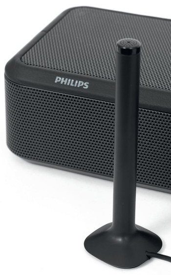Philips zadbał o system automatycznej kalibracji i zadanie to wykonał z największą starannością. W zestawie z FB1 otrzymujemy bowiem mikrofon (a więc nie jest on wbudowany w listwę, jak w większości soundbarów, o ile w ogóle są wyposażone w kalibrację) przygotowany wraz z małym statywem i długim przewodem.