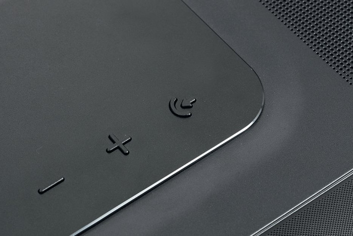 W górnej części belki wykonano niski próg – nadstawkę z przyciskami (dla obsługi najbardziej podstawowych funkcji). Niemal cała powierzchnia frontu została osłonięta metalową maskownicą, podobna siatka zasłania skraje górnej powierzchni, więc i tam są głośniki.