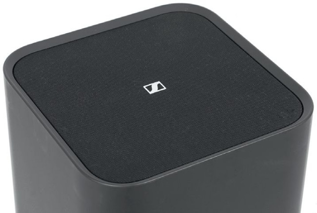 Zazwyczaj w takich przypadkach głośnik jest zainstalowany na dolnej ściance, blisko podłogi, co przynosi najskuteczniejsze wzmocnienie niskich tonów. Jednak w Sennheiserze Ambeo Sub głośnik znajduje się na górnej ściance, pod maskownicą – bardzo oryginalnie.
