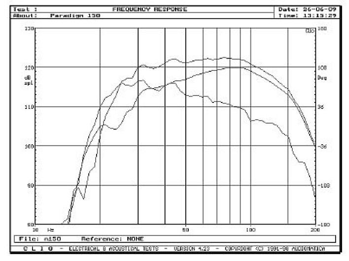 Spadek -6 dB na dolnym zboczu widać przy 24 Hz dla najszerszego pasma przenoszenia i nawet jeszcze trochę niżej przy niskim filtrowaniu (bo zmienia się też poziom odniesienia - wysokość szczytu charakterystyki, od którego odmierzamy 6 dB) - trudno zaprzeczyć, wyśmienicie. Nie odbyło się to wcale kosztem maksymalnego poziomu, który osiągnął 113 dB. Co prawda nie widać tu przewagi Paradigma nad innymi subwooferami, jaka może być sugerowana mocniejszym wzmacniaczem, jednak w dokładniejszej analizie służy on ostatecznie zrekompensowaniu małej objętości obudowy. Zadanie zostało ykonane - zaawansowanymi rozwiązaniami udało się osiągnąć wyniki, jakie są typowe dla średnio dwa razy większych subwooferów! I nikt tu nie łamał żadnych praw fizyk...