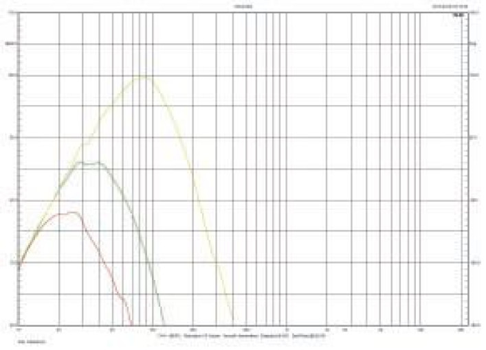 Prawdopodobnie nie uda się tym sposobem osiągnąć wysokich poziomów głośności - moc wzmacniacza zostanie wykorzystana do takiego właśnie korygowania charakterystyki. Mamy jeszcze do dyspozycji przełącznik "equalizacja", który - poza pozycją neutralną - ma dwie aktywne - oznaczone jako +6 dB i +12 dB. Zbadaliśmy jego działanie przy trzech wcześniej omówionych częstotliwościach filtrowania, ale wystarczy pokazać tylko jeden, najbardziej reprezentatywny obrazek, dla najwyższej z nich (140 Hz), przy której equalizacja jest też najbardziej użyteczna.