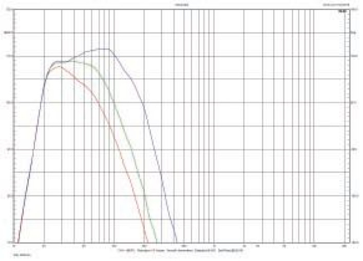 Nawet producent nie doszacował możliwości swojej konstrukcji, bowiem chwali się pasmem od 24 Hz. Górną częstotliwość graniczną możemy przesuwać między 60 Hz a 150 Hz (według oznaczeń przy pokrętle i danych katalogowych, miał to być zakres 40 - 200 Hz); trzy krzywe pokazują charakterystyki w jego pozycjach skrajnych i środkowej.