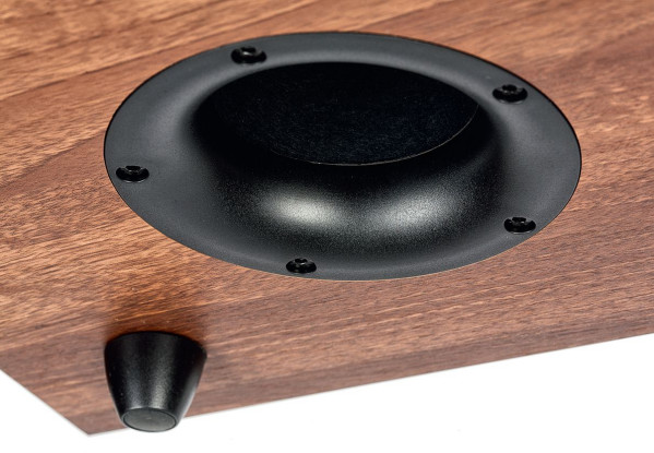 Swoją drogą, głośnik wygląda bardzo efektownie, na membranie naniesiono logo i dodatkowe napisy, krawędź kosza błyszczy się jak sama membrana – jej zewnętrzna warstwa to aluminiowa "miska" podparta celulozowym stożkiem. Taka struktura będzie bardzo sztywna, co jest bardzo pożądane w przetwarzaniu niskich częstotliwości.