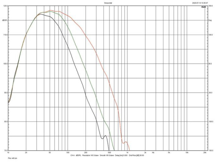 W oktawie 10–20 Hz spadek wynosi 24 dB/okt, dodano więc elektryczne fi ltrowanie górnoprzepustowe 12 dB do "naturalnego" spadku obudowy zamkniętej, wynoszącego też 12 dB/okt, ale wypadkowe nachylenie i tak jest znacznie mniejsze niż w innych subwooferach tego testu, gdzie filtrowanie jest dodawane do działania systemu bas-refl eks (lub z membraną bierną).