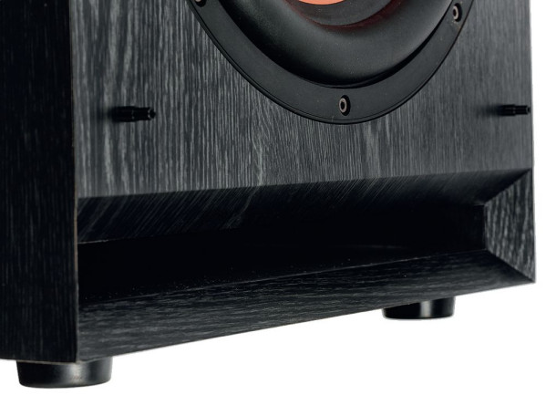 Klipsch "zainwestował" w głośnik nie tylko duży, co przede wszystkim wyposażony w silny układ magnetyczny (o średnicy 14 cm). Wylot bas-refleksu, podobnie jak we wszystkich modelach serii SPL, znajduje się na froncie i ma formę dużej szczeliny przy dolnej krawędzi rozciągającej się na całą szerokość obudowy.
