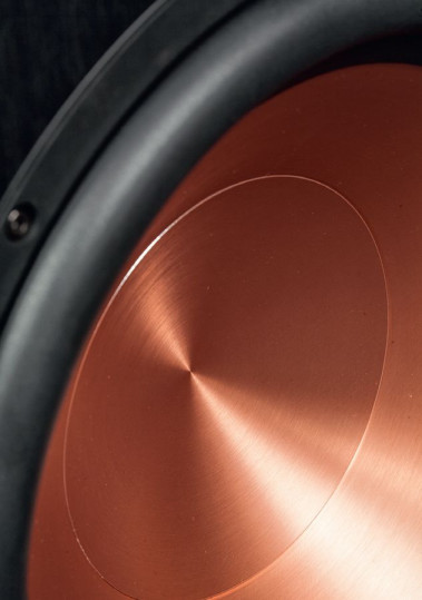 Efektownie błyszcząca membrana jest faktycznie metalowa, prawdopodobnie aluminiowa, a miedź jest tutaj tylko dodatkiem wyróżniającym dzisiaj wiele konstrukcji Klipscha.