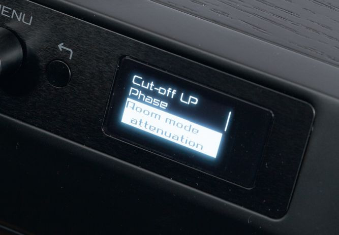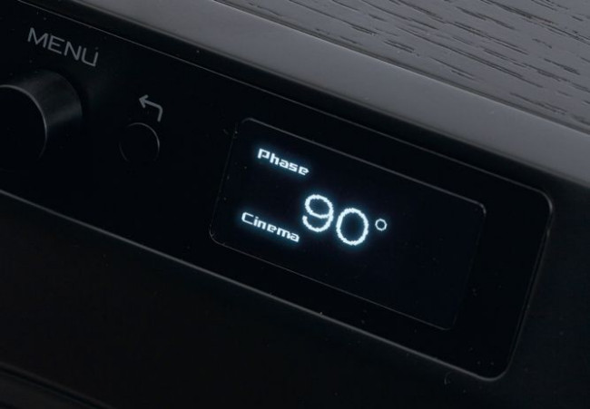 Klasyczna "triada" regulacji to poziom, częstotliwość filtrowania dolnoprzepustowego ("odcięcia") i faza. Oczywiście jest ona przygotowana w Dali Sub V-16 F. Regulacja poziomu ma własne pokrętło (na panelu znajdującym się na górnej krawędzi obudowy), a dostęp do wszystkich pozostałych funkcji daje drugie pokrętło/przycisk, działające sekwencyjnie.