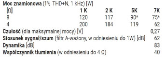 | Moc znamionowa (1% THD+N, 1 kHz) [W] 4 Ω 2K | 184 |
