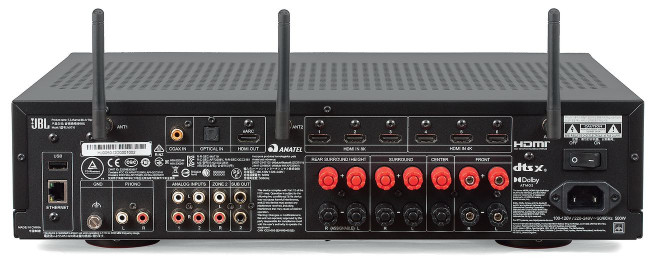 JBL MA710 znajduje się dokładnie pośrodku stawki, ponad tańszymi, 5-kanałowymi MA310 i MA510, a poniżej 7-kanałowego MA7100HP oraz referencyjnego 9-kanałowego MA9100HP. JBL określa te urządzenia jako wzmacniacze A/V (a nie amplitunery), bo nie mają one modułu radia FM ani DAB.