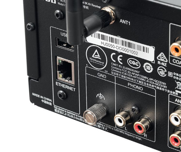 Sekcja sieciowa jest obowiązkowa w każdym nowoczesnym amplitunerze (a więc i wzmacniaczu A/V), jest więc przewodowe wejście LAN, jak również komunikacja bezprzewodowa Wi-Fi.