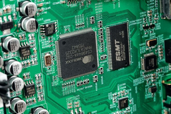 W tylnej części obudowy umieszczono moduł z obwodami cyfrowymi. Wygląda już dość typowo, z popularnymi interfejsami wejściowymi HDMI oraz dekoderem surround Cirrus Logic CS49844A (stosują go "wszyscy"). Przetworniki C/A to również Cirrus – CS42528, w niewielkiej kości mieszczący aż osiem konwerterów C/A i dwa A/C (24 bit/192 kHz).