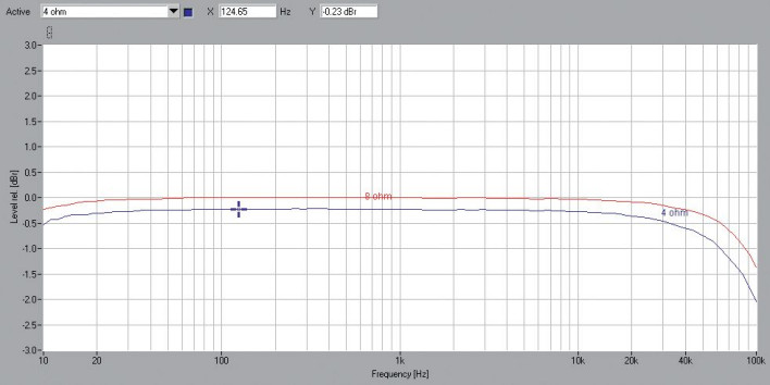 Cambridge Audio Topaz SR20, podobnie jak pozostałe amplitunery w tym teście, nie błyszczy wysokim odstępem od szumu, ale 80 dB można uznać za wynik poprawny; dynamika osiąga 101 dB - pomogła w tym wysoka moc. Charakterystyki częstotliwościowe (rys.1) wyglądają bardzo dobrze, spadek przy 10 Hz jest pomijalny, a przy 100 Hz ma wartości ok. -1,5 dB oraz - 2 dB, odpowiednio dla 8 i 4 Ω.