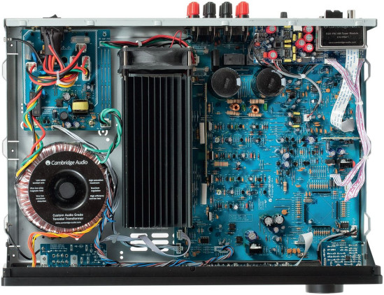 Moduł tunera radiowego to maleńka puszeczka przy tylnej ściance, układ z elektroniką cyfrową jest również niewielki. Cyfrę na analog konwertuje Wolfson WM8740, znany z samodzielnych DAC-ów Cambridge Audio.