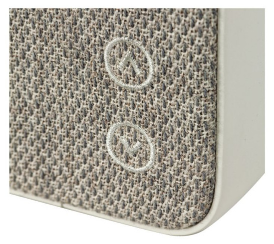 Przyciski do zmiany poziomu głośności skomponowano z tkaniną fi rmy Kvadrat. Powyżej znajduje się sygnalizator stanów pracy urządzenia.