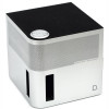 Monitor Audio S150 ma niewiele przycisków: sieciowy na przednim panelu oraz kilka po prawej stronie obudowy. Z tyłu, nad wspomnianymi otworami membrany biernej, jest nagwintowany otwór na uchwyt ścienny (niedostarczany w komplecie z głośnikiem). Na dole widać analogowe wejście audio (mini-jack), gniazdo USB (do ładowania urządzenia przenośnego) oraz przycisk do resetowania głośnika.
