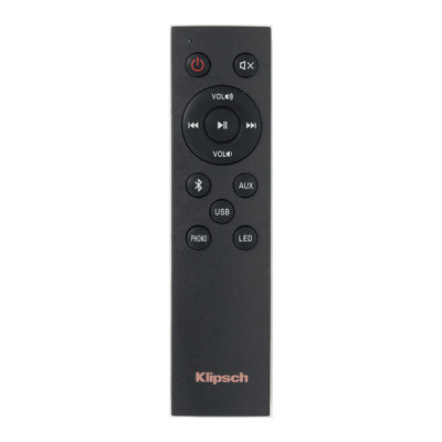 Wprawdzie standard Bluetooth nie wyklucza aplikacji mobilnej, ale w praktyce takie połączenia zdarzają się rzadko. Klipsch nie brnie więc w takie rozwiązanie, za to w zestawie znajduje się klasyczny pilot zdalnego sterowania. Dubluje on funkcje z samego urządzenia, ale wprowadza też kilka dodatków, np. sterowanie odtwarzaczem BT.