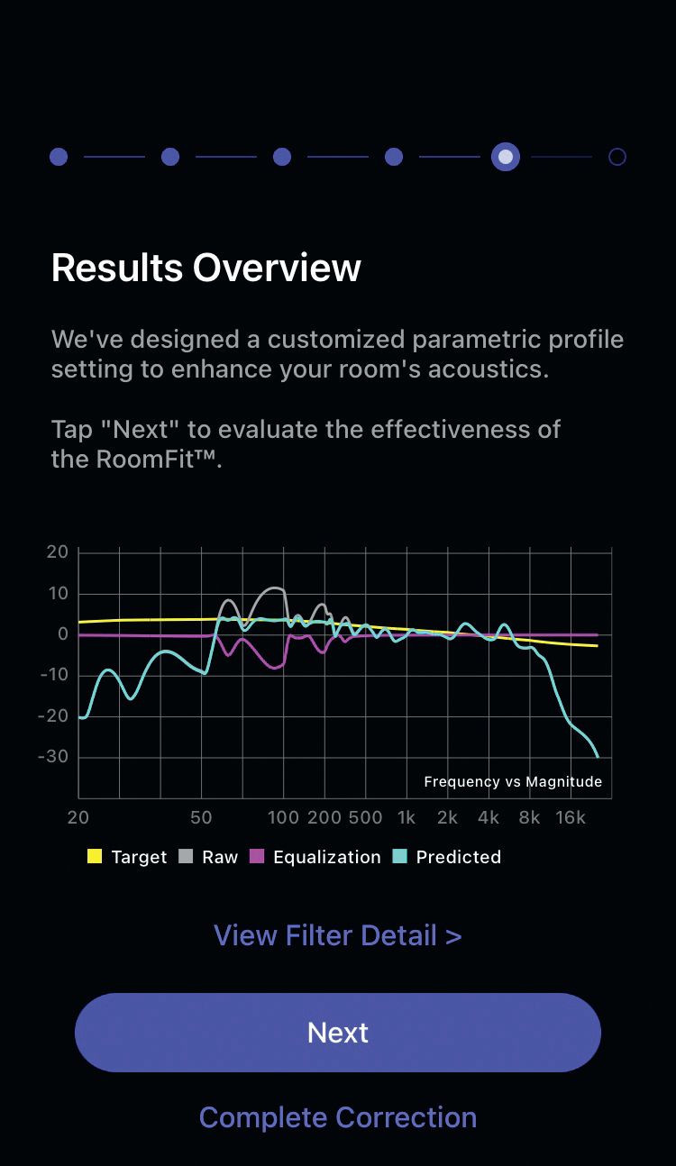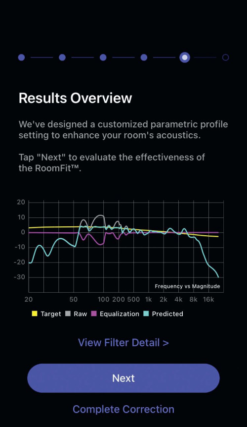 Urządzenie przeprowadza kalibrację w asyście telefonu, wykorzystując nie tylko wydzielony obszar aplikacji mobilnej, ale i wbudowany w smartfon mikrofon (podobnie jak system Sonosa True Play).