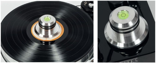 Elementem wyposażenia jest krążek dociskowy z miniaturową poziomicą ułatwiającą ustawienie gramofonu. Krążek znajduje swoje miejsce na specjalnym trzpieniu, w podstawie.