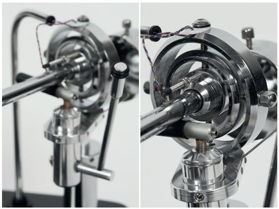 Starannie wypolerowane elementy ramienia uwzględniają też "windę" z silikonowym tłumikiem opadania, Rurka ramienia wchodzi w masywną tuleję, która jest zamocowana w precyzyjnych łożyskach zawieszenia.