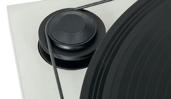 Typowy Pro-Ject - napęd paskowy, prowadzony na zewnętrznej krawędzi talerza, a zmiana prędkości obrotowej odbywa się poprzez założenie paska na odpowiednią rolkę silnika.