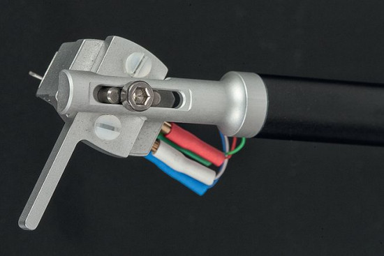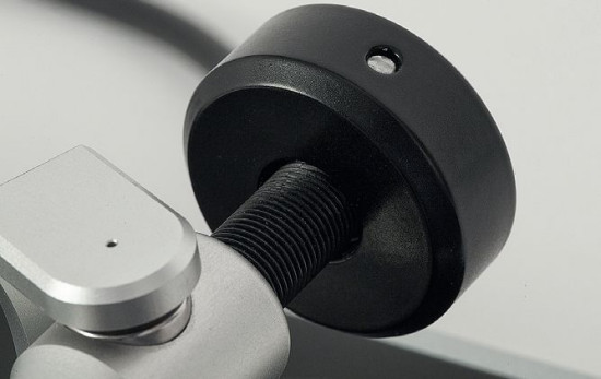 W środku kratownicy montażowej ramienia można dostrzec niewielkie pokrętło, niestety nie ma żadnej skali, więc ustawienie żądanej wartości wymaga liczenia obrotów i pewnej wprawy, a gwarantem precyzji będzie specjalny przymiar lub płyta testowa (Clearaudio taką oferuje).