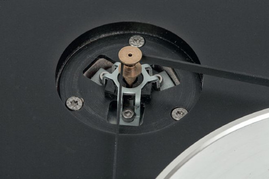 Górna warstwa plinty to platforma z tworzywa. Napęd zakryto talerzem, silnik znajduje się w obrysie podstawy, osadzony w dystansach tłumiących wibracje. Na osi silnika znajduje się metalowa tuleja, napęd przekazywany jest na wewnętrzny metalowy subtalerz paskiem o płaskim profilu.