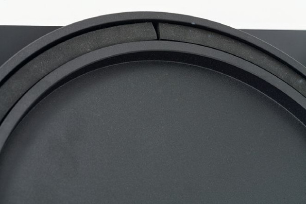 Wykonano go z aluminium, a rzeczą wyjątkową jest wewnętrzny profil z dodatkowym kołnierzem i przytwierdzonym do niego elastycznym pierścieniem tłumiącym. Nie jest to rozwiązanie zupełnie nowe, znamy je np. z konstrukcji Elaca, ale trzeba przyznać, że zazwyczaj droższych.