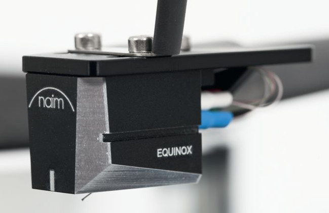 Wkładka Equinox MC (kanciasty korpus z masywną dolną częścią) wygląda na produkt japoński. Okazuje się, że obudowę zaprojektował Naim, natomiast generator i układ drgający to dzieło ClearAudio. Jak sama nazwa wskazuje, wkładka jest konstrukcją z ruchomymi cewkami (Moving Coil).