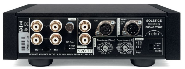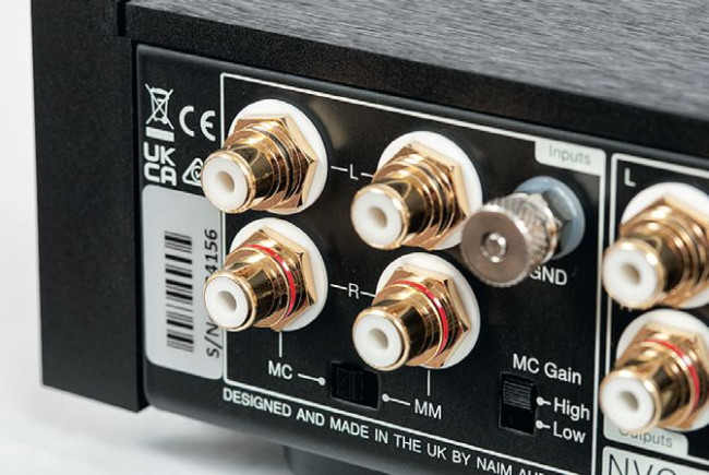 Dla wkładek MM i MC przygotowano niezależne wejścia, przy czym nie należy używać ich jednocześnie (np. podłączając dwa gramofony). Wyjście jest jedno, w dwóch standardach: RCA oraz… ulubionym przez Naima (chociaż obecnie rzadziej stosowanym) DIN. Drugie gniazdo DIN służy do podłączenia zewnętrznego zasilacza.