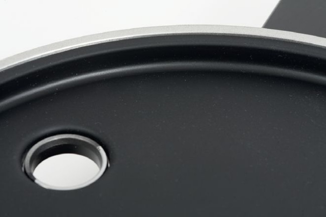 Talerz to solidny, aluminiowy odlew, wewnętrzną stronę podklejono warstwą gumy, co jednocześnie wprowadza tłumienie drgań, materiał zwiększa również masę talerza. W zestawie otrzymujemy grubą gumową matę.