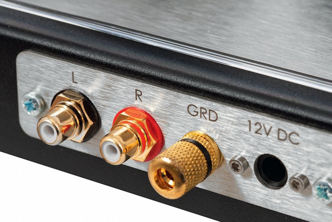 Bardzo dobrze wygląda panel przyłączeniowy z solidnymi gniazdami RCA oraz oczywiście trzpieniem uziemiającym. Zasilacz jest już raczej typowy, ma postać niewielkiej ściennej kostki.