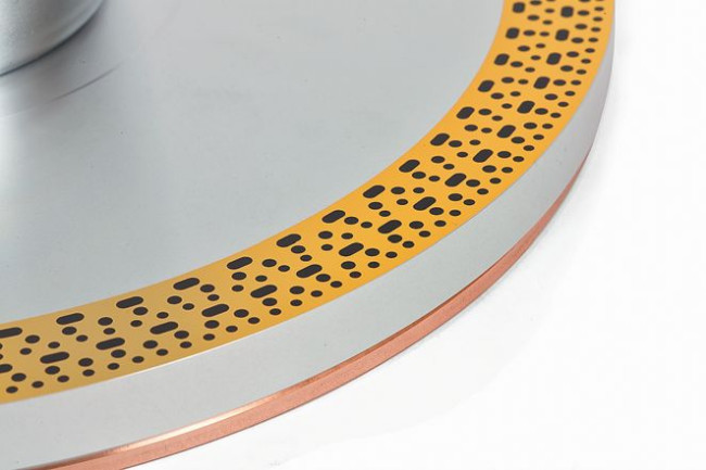 Miedziana warstwa talerza jest też ozdobą, ale przede wszystkim pełni ważną rolę konstrukcyjną. Zwiększa masę talerza, co ma korzystny wpływ na stabilność obrotów, tłumi też rezonanse dzięki związaniu metali o różnych parametrach.