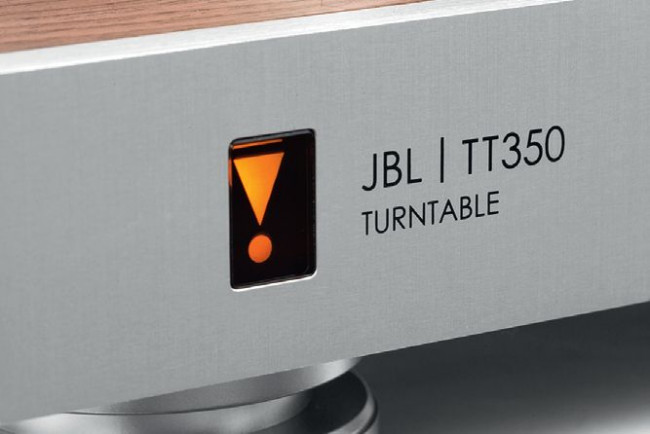 JBL TT350 Classic, zgodnie z nazwą, będzie najlepiej wyglądał w towarzystwie innych urządzeń tej serii. Plintę z MDF-u oklejono fornirem orzechowym, dopełnia ją gruby, aluminiowy panel frontowy.