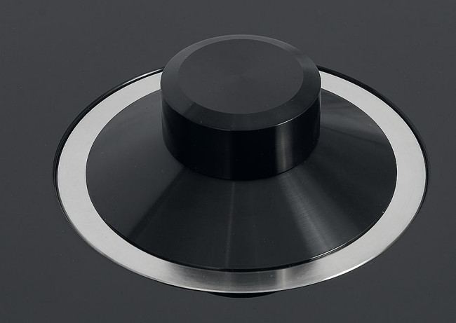 - Płytę stabilizuje krążek dociskowy, nakręcany na centralny trzpień, aby się nie ślizgała po szklanej powierzchni.