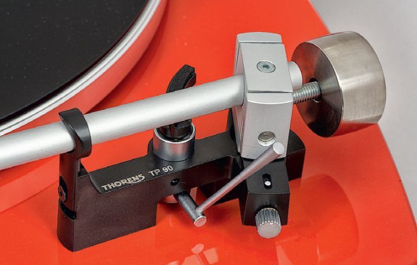Thorens zamontował ramię TP90 i uzbroił gramofon we wkładkę typu MM o symbolu AT-95B, której producentem jest Audio-Technica. Wkładka została zamontowana i skalibrowana, natomiast z uwagi na zabezpieczenia transportowe musimy sami założyć krążek przeciwwagi i odpowiednio do pożądanej siły nacisku igły go ustawić. To jednak również zadanie proste.