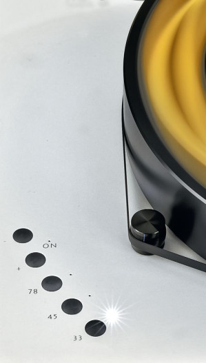 Sloty mają naniesioną na brzegach precyzyjną podziałkę, więc montaż lub wymiana ramienia jest łatwa i może być bardzo precyzyjna. Gramofon stoi na trzech aluminiowych nóżkach z elementami z miękkiej gumy, którymi regulujemy poziom.